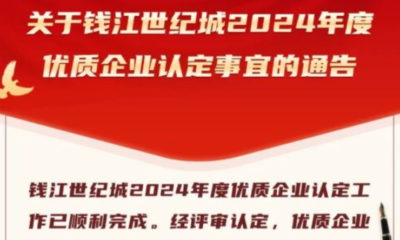 喜訊!杭州恒領(lǐng)科技有限公司獲評(píng)錢(qián)江世紀(jì)城 2024 年度優(yōu)質(zhì)企業(yè)